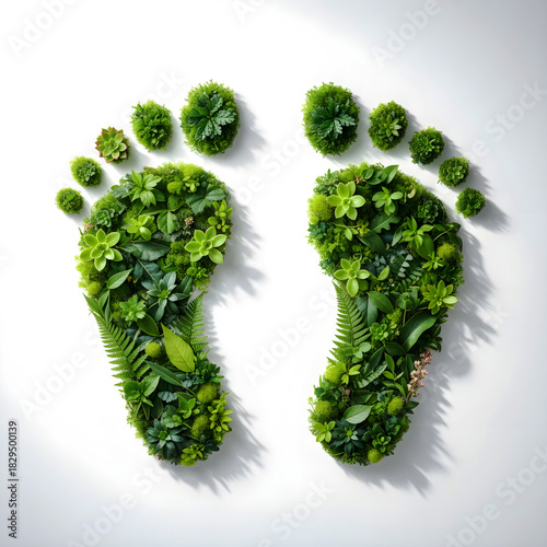 Eco-friendly footprint made of green plants — a symbolic representation of sustainability and environmental awareness