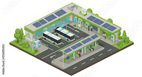 public, transport, environmentally friendly, solar, energy, station, bus, green, sustainable, urban, environment, isometric, technology, city, infrastructure, renewable, clean, future, power, network, mobility, bus, charging, transit, terminal, innovation, modern, road, passenger, commuting