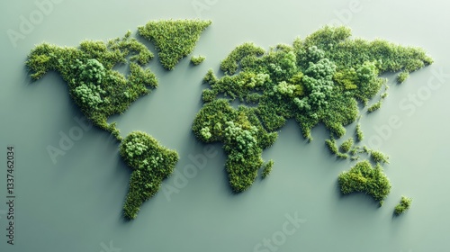 Eco-friendly world map made of greenery, symbolizing sustainability and environment.