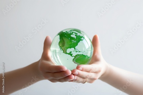 Ecology theme, planet earth in human hands