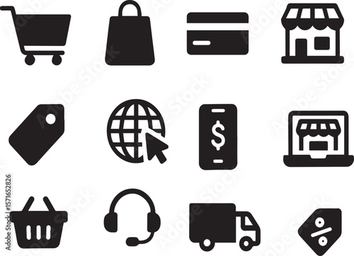 e-business, shopping, online, retail, delivery, cart, bag, payment, store, discount, price, global, mobile, laptop, basket, support, shipping, sale, purchase, web, icon, icon, vector, set, symbol, business, money, signs, shop, illustration, cyberspace, buttons, computer, card, shopping cart, camera, black, buy