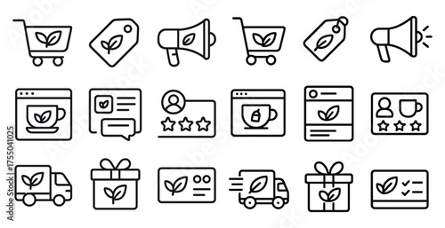 e-business, shopping cart, outline, vector, icon, set, commerce, online, purchase, basket, shop, cart, checkout, sale, transaction, delivery, design, marketing, branding, digital, bag, trade, modern