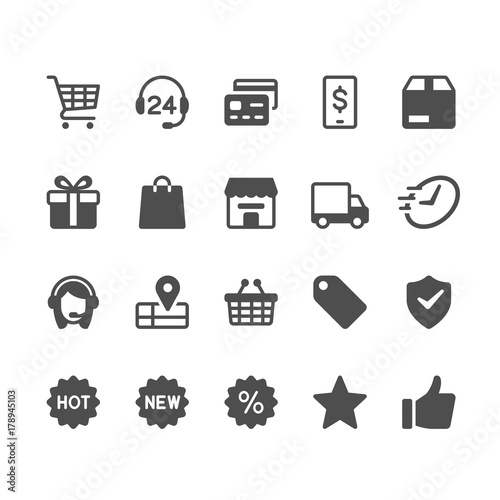 icon, shopping, e-business, sale, business, cart, shipping, call center, support, mobile, store, clock, hot, new, shop, gift, operator, basket, present, package, coupon, payment, secure, truck, credit card, delivery, discount, star, box, transportation, tags, label, shield, thumb up, like, map, signs, symbol, vector, flat, glyphs