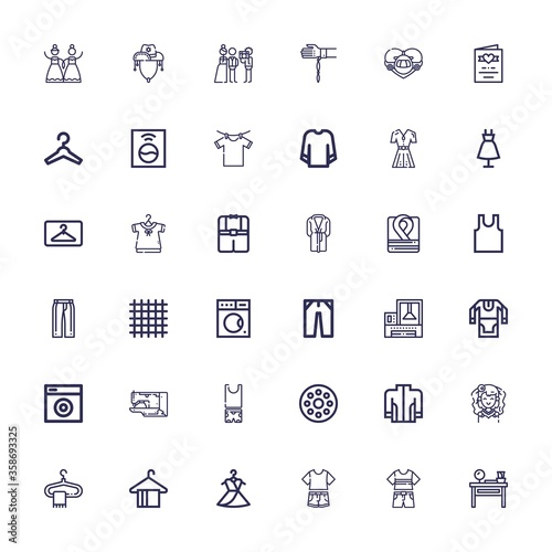 dress, icon, set, vector, dressing, table, clothes, hanger, bride, jacket, bobbin, sewing, machine, washing, tunic, jean, clothes, trousers, sleeveless, robe, bathrobe, clothing, fashion, sweatshirt, wedding, invitation, honeymoon, handkerchief, honeymooners, cowboy, hat, illustration, symbol, signs, isolated, design