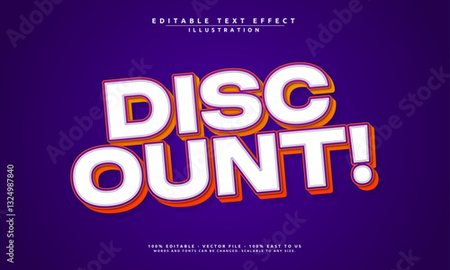 Editable 3D discount text effect with a bold and modern style. Perfect for sales, promotions, and marketing designs