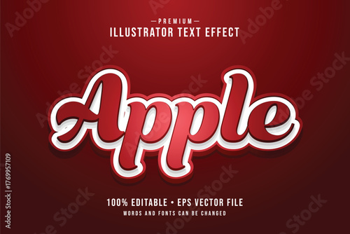 Editable Apple Text Effect Vector – Bold Cursive Typography with Red Gradient for Illustrator Design Projects