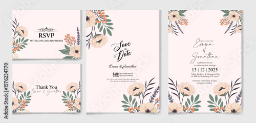Editable Elegant Floral Wedding Invitation Set with RSVP Design