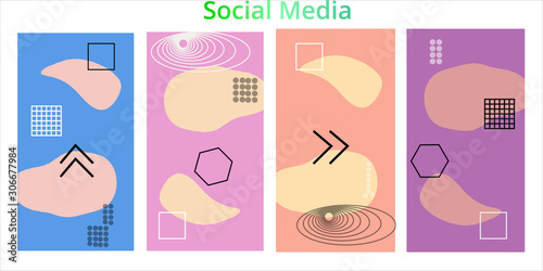 Editable story templates with empty place for text abstract creative backgrounds for social media. Bright colored with hand drawn scribbles promotional backgrounds for social media apps - vector eps10