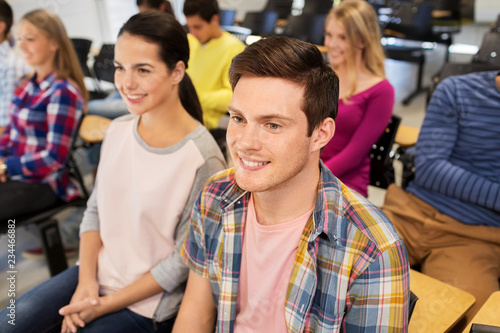 student, education, school, lecture, hall, teenage, learning, college, high school, auditorium, group, boy, girl, smiling, listening, happy, cognition, classmate, lesson, class, classroom, indoor, people, person, concept, studying, teenage, young, together, many, learner, sitting, study, university, learn, man, woman, cheerful, audience