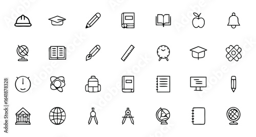 Education Outline Icon Collection — School, Learning, Academic Tools, and E-Learning Vector Illustrations for Branding, Teaching, and Digital Design