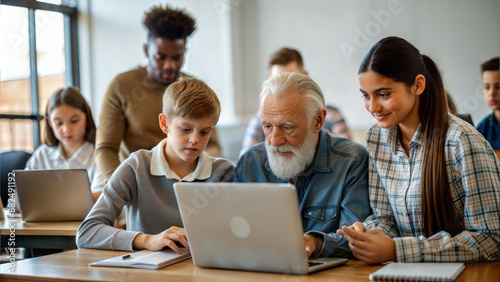 teaching, laptop, education, student, technology, computer, learning, classroom, cyberspace, group, man, teamwork, cognition, team, people, university, study, person, together, table