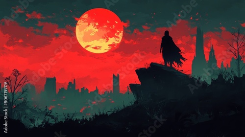 Eerie Ghoul Hovering over Abandoned Battlefield - Minimalist Flat Illustration