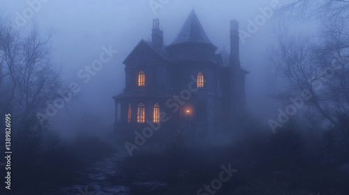 victorian, house, fog, glowing, window, eerie, night, skittish, haunted, architecture, lantern, mysterious, dark, tree, path, mist, chilling, atmospheric, ghostly, old, vintage, shadowy, silhouette, creepy, abandoned, historical, twilight, moody, foreboding