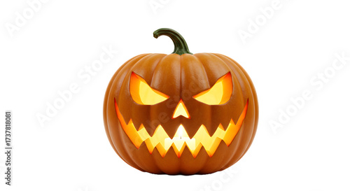 Eerily glowing jack-o'-lantern ready for spooky Halloween celebrations and fall season decorations with its toothy grin