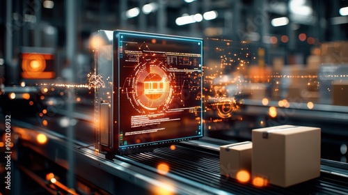warehouse, conveyer, belt, automated, machinery, sorting, system, box, scanning, technology, operation, workflow, digital, screen, logistic, efficiency, industry, manufacturing, supply, chain, robotic, transportation, inventory, shipment, process, innovation, automation, distribution, management