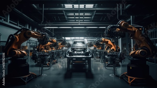 Efficient Automation: Robots on Car Assembly Line in a Thriving Factory. Generative AI