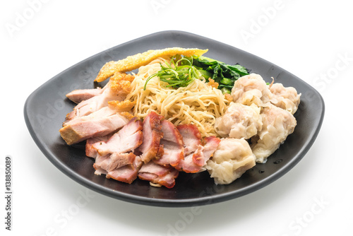 Egg noodle with red roast pork, crispy pork and dumplings