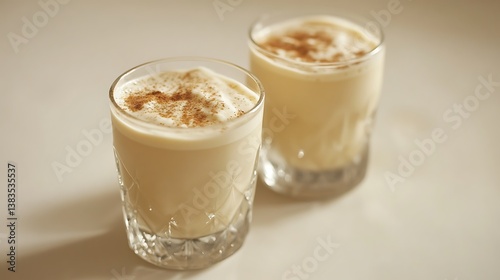 Eggnog with milk rum cinnamon and nutmeg in the glasses