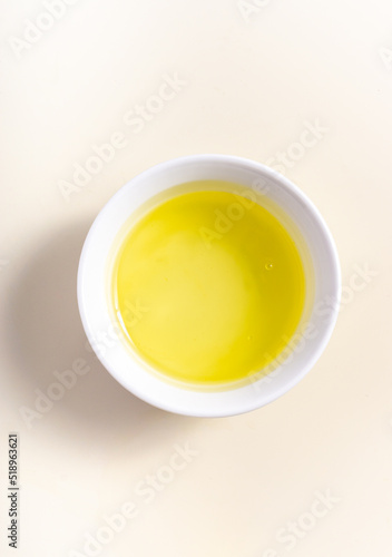 Eggs whites in a white bowl isolated on broken white