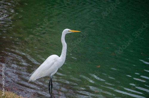Egret standing in green water