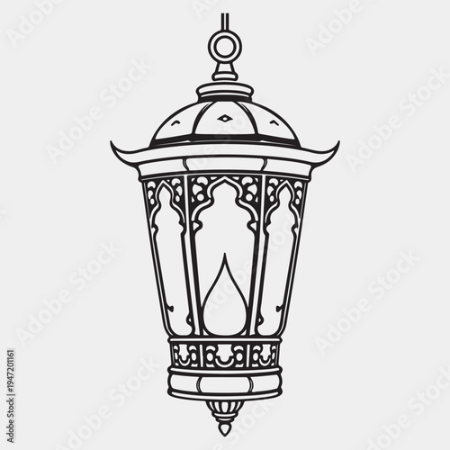 Eid lantern black and white line art vector illustration