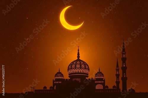 Eid Mubarak greeting card Eid background with mosque