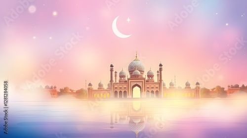 ramadan, taj mahal, india, muslim, islam, mosque, minaret, dome, crescent moon, night, illustration, vector, background, religious, culture, tradition, celebration, greeting, card, poster, wallpaper, abstract, spiritual, peaceful, serene, tranquil, light, aethereal, architecture, landmark, travel, tour tourism, historical building, religion, palace