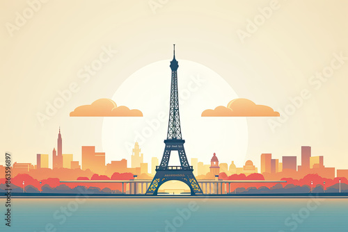 eiffel tower, sunset, silhouette, paris, clear sky, blue, pink, green, soft, lighting, france, vector, art, design, graphic design, landmark, vacation, architecture, seine, bridge, sky, sun, cloud, orange, vibrant, illustration, artwork, vintage, retro, famous, beautiful, scenery, landscape, digital artwork, abstract art, minimalist, modern, print, eiffel tower, tower, city, french, night, view, day, sunrise, metal