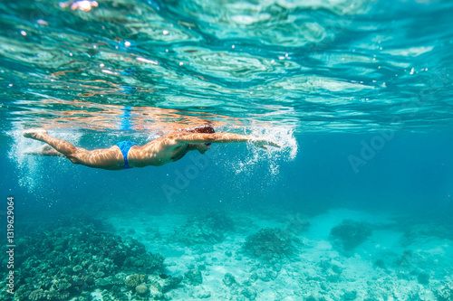 Ein Sportler schwimmt in kristallklarem Meer