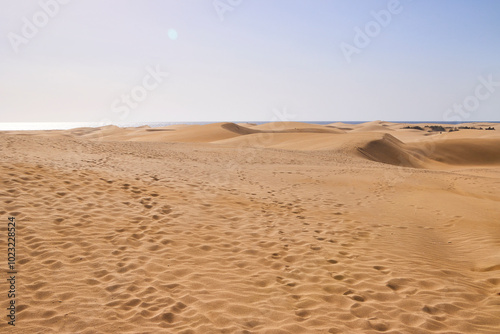spain, europa, island, dune, sand, wilderness, heaven, countryside, feel, soft, footprint, nature, sun, travel, tour tourism, atlantic, gran canaria, yellow, dry, hill, blue, horizon, sea, water, coast, natural, gold, beach, ocean, summer, view, scenic, sandy, light, beauty, grain, sunlight, assured, wave, wilderness, dryness, thirst, blank, vacation