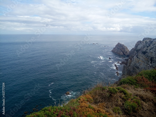 sea, coast, landscape, water, beach, ocean, heaven, blue, nature, island, summer, travel, view, bay, rock, cliff, green, coastline, scenic, mountain, view, cloud