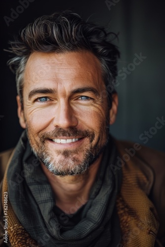 stoic, portrait, closeup, bearded, senior, lifestyle, wisdom, contentment, life events, ageing, style, natural light, modern, fashion, face, eye, facial hair, smile, foulard, skin, joy, serenity, character, autumn color, casual attire, relaxed, approachable, dignified, beard, white hair, bokeh, individuality, outerwear, well-being, happy, expressive, genuine, engaging, head shot