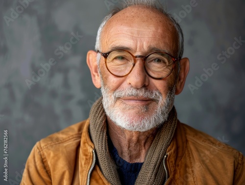 stoic, portrait, closeup, bearded, senior, lifestyle, wisdom, contentment, life events, ageing, style, natural light, modern, fashion, face, eye, facial hair, smile, foulard, skin, joy, serenity, character, autumn color, casual attire, relaxed, approachable, dignified, beard, white hair, bokeh, individuality, outerwear, well-being, happy, expressive, genuine, engaging, head shot