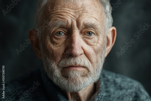 Elderly man with expressive eyes and gray beard in intimate portrait setting
