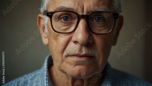 Elderly man with glasses looking directly at the camera.