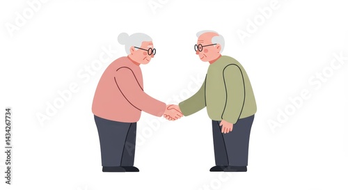 elderly, handshake, senior, flat, vector, pastel, minimalist, greeting, connection, respect, friendship, white background, people, ageing, mature, community, support, warmth, interaction, calm, clean, rounded, trust, agreements, communication, gentle, humanity, compassion, kindness, peaceful, togetherness, wellness, tradition, lifestyle, emotion, social, oneness, care, meeting, expression, dignity, illustration, simplicity, acceptance, human relationships