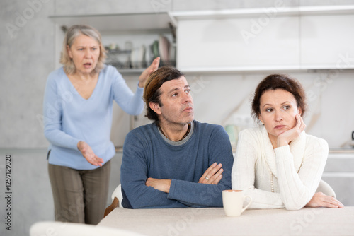 Elderly woman swears at married couple. Complex intergenerational relationships