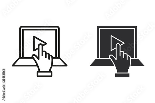 learning, e-learning, icon, vector, education, digital, distance, symbol, online, web, school, study, student, university, training, learn, college, tablet, laptop, computer, line, outline, black, white, illustration, pictogram, silhouette, simple