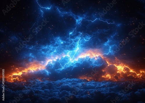 Electric Blue Lightning in Dark Void Dynamic Composition