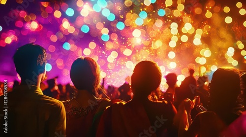 celebration, crowd, festival, fireworks, vibrant, electric, night, sky, colourful, light, dynamic, joyful, festive, cultural, radiant, detailed, energetic, modern, urban, event, party, spectacular, lively, exuberant, artistic, cinematic, inspiring, communal, explosive, iconic, traditional, celebratory, spirited, aglow
