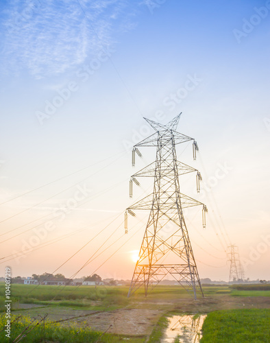 tower, cloud, sunrise, power, yellow, rod, line, scenery, electricity, cable, orange, light, voltage, dusk, shape, abstract, modern, arrangement, energy, high, direction, sunset, transmission, beautiful, silhouette, nature, metal, facility