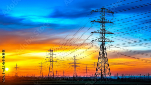 Electric tower, silhouette at sunset