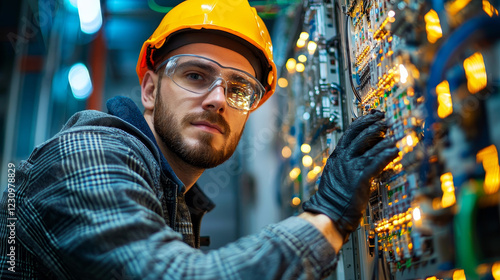electrical, engineer, control, panel, safety, helmet, glove, technology, industrial, maintenance, circuit, technician, energy, equipment, wire, machinery, professional, working, system, repair, innovation, hardware, workshop, cable, tool, goggles, environment, labor, power, installation, electronic, infrastructure, service, project, community, skilled, modern, design, industry, connection, automation, workspace, engineering, operation, performance, troubleshooting, efficiency, system, diagnostic