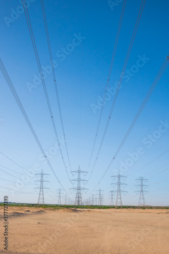 Electricity lines through Desserts and dessert landscape