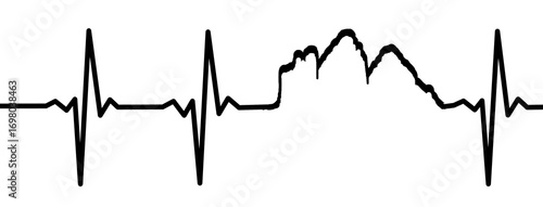 Electrocardiogram Waves of Tre Cime di Lavaredo profile, hiking heart rate, 2D conceptual graphic, black on white