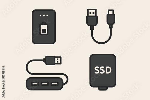 electronic, device, accessory, usb, cable, hub, storage, portable, technology, illustration, digital, vector, connectivity, charger, datum, transfer, computer, peripheral, contraption, modern, design, icon, symbol, equipment, component, hardware, electrical, connection, interface, adapter, drive, solid state, memory, external, compact, backup, device, power, supply, cord, port, input, output, extension, splitter, fast, accurateness