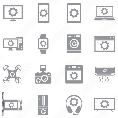 electronic, setting, icon, grey, white, machine, maintenance, media, microwave, monitor, object, oven, phone, air conditioner, camera, laptop, picture, refrigerator, screen, service, set, support, symbol, tablet, technology, television, vector, washing, watch, adjusting, cogwheel, collection, computer, gear, earphones, illustration, isolated, design, digital, display, drone, equipment, smart, signs, website, flat, graphic, silhouette