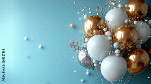 balloon, celebration, party, festive, decoration, holiday, event, birthday, anniversary, new year, gold, white, blue, confetti, shiny, metallic, decorative, festive, chance, background, design, posh, elegant, greeting, fun, stylish, stencil, pastel, system, cluster, modern, clear, beautiful, art, graphic, celebrate, surprise