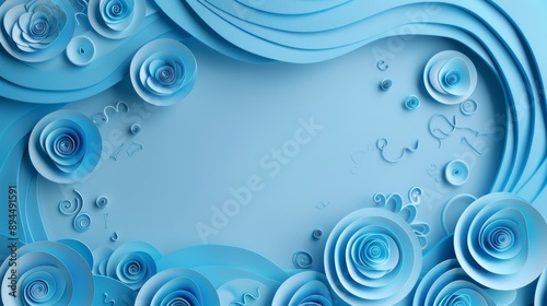 Elegant 3D Paper Craft Doodles on Fresh Blue Gradient Background - Top View Clean Backdrop for Design