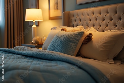 bedchamber, interior, luxury, soft, texture, elegant, lighting, fixture, colours, decor, design, room, furniture, style, comfort, cosy, relaxation, atmosphere, ambience, modern, contemporary, lifestyle, photo, image, decorate, home, hotel, resort, rental, inn, vacation, hospitality, accommodation, comfortable, relaxing, stylish, coordinated, plush, inviting, tranquil, serene, calming, refined, sophisticated, lavish, opulent, opulent, indulgent